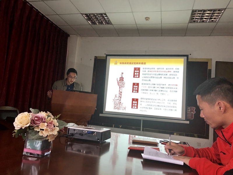 向晋文做了《学习贯彻<中国共产党工作条例(试行)>切实把全面从严治党落实到支部》的专题报告。从“毫不动摇地坚持党对高校的全面、切实把党的建设工作落到实处、加强基层组织建设、推进全面从严治党向党支部延伸”等四个方面解读了《中国共产党工作条例(试行)》,重点详述了基层党建工作的深化整改工作,围绕如何发挥基层党支部的战斗堡垒作用,如何“抓在平时,严在制度,落在形式”,进行了深入浅出的分析讲解。历时一个半小时的专题报告引人入胜,博得了与会人员一次次的热烈掌声。