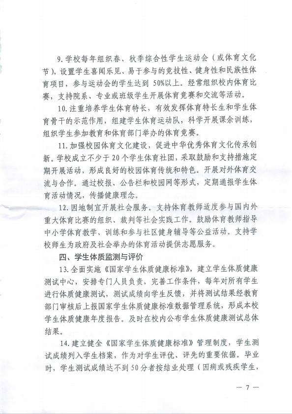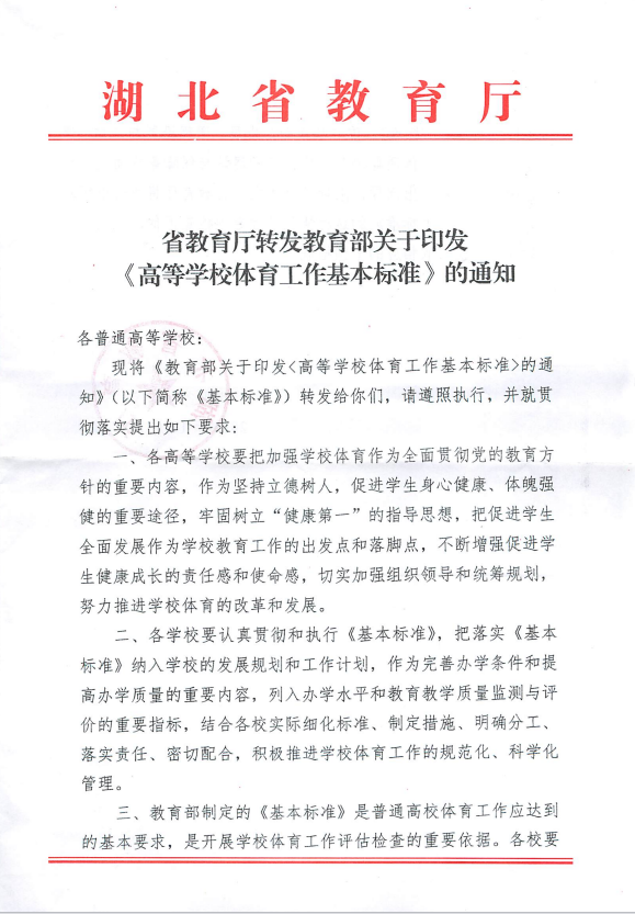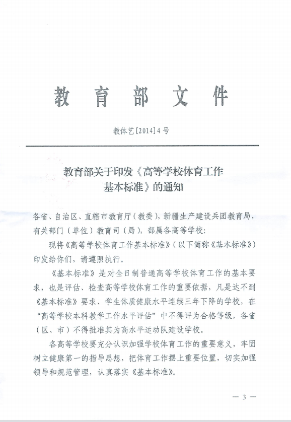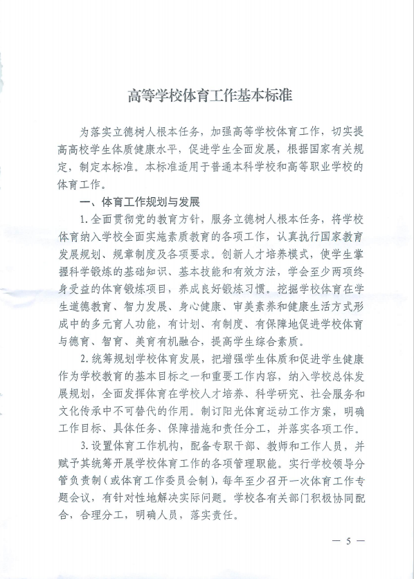 高校体育工作标准