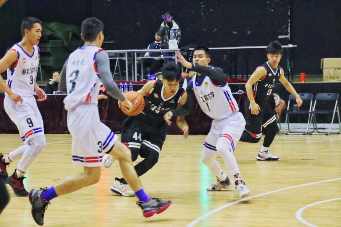 我校男篮分别以64:30战胜黄冈师范学院、76:84负于老对手海军工程大学,小组赛结束后,同样以E组第一的身份晋级第二阶段交叉赛。