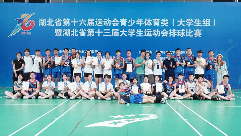 2022年7月2日至5日,湖北省第十六届运动会青少年体育类(大学生组)暨湖北省第十三届大学生运动会排球甲组比赛在武汉大学卓尔体育馆落下帷幕,我校男子排球队荣获甲组男子组季军,女子排球队荣获甲组女子组亚军。