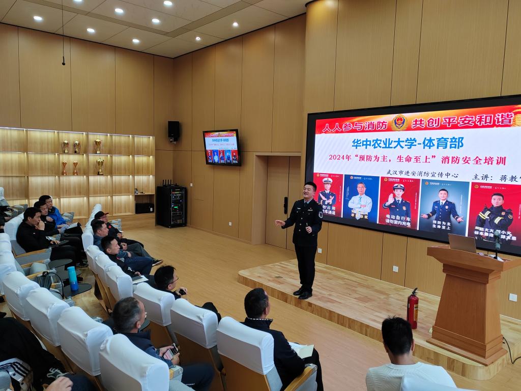 邀请武汉市进安消防宣传中心蒋豪教官进行了消防安全培训。