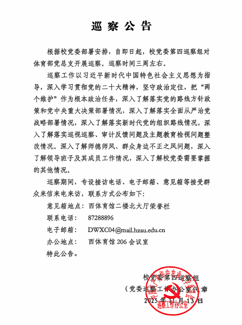 师德师风问题举报邮箱:tyb@mail.hzau.edu.cn