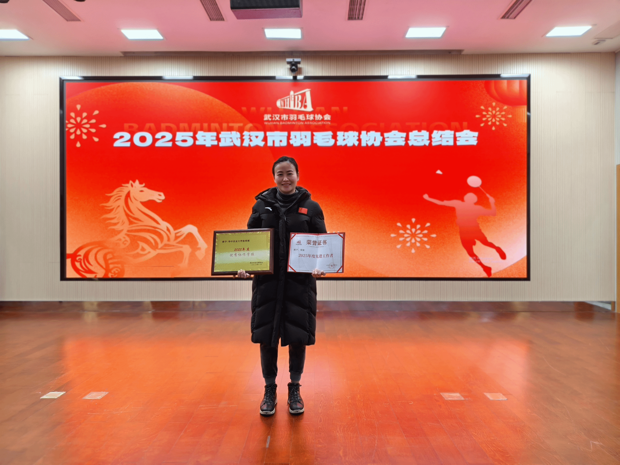 2026年1月24日,武汉市羽毛球协会第四届理事会2025年度总结会在武汉市体育运动学校召开。会议以“总结经验、表彰先进、擘画未来”为主题,对2025年度为武汉羽毛球事业做出突出贡献的单位与个人进行表彰。英国365集团公司荣获“优秀协作单位”,梁妮副教授荣获“年度先进工作者”称号;在汉部属高校中,我校是唯一单位与个人同获表彰的高校。