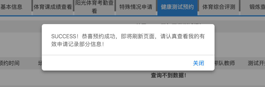 图 4 体测预约成功提示