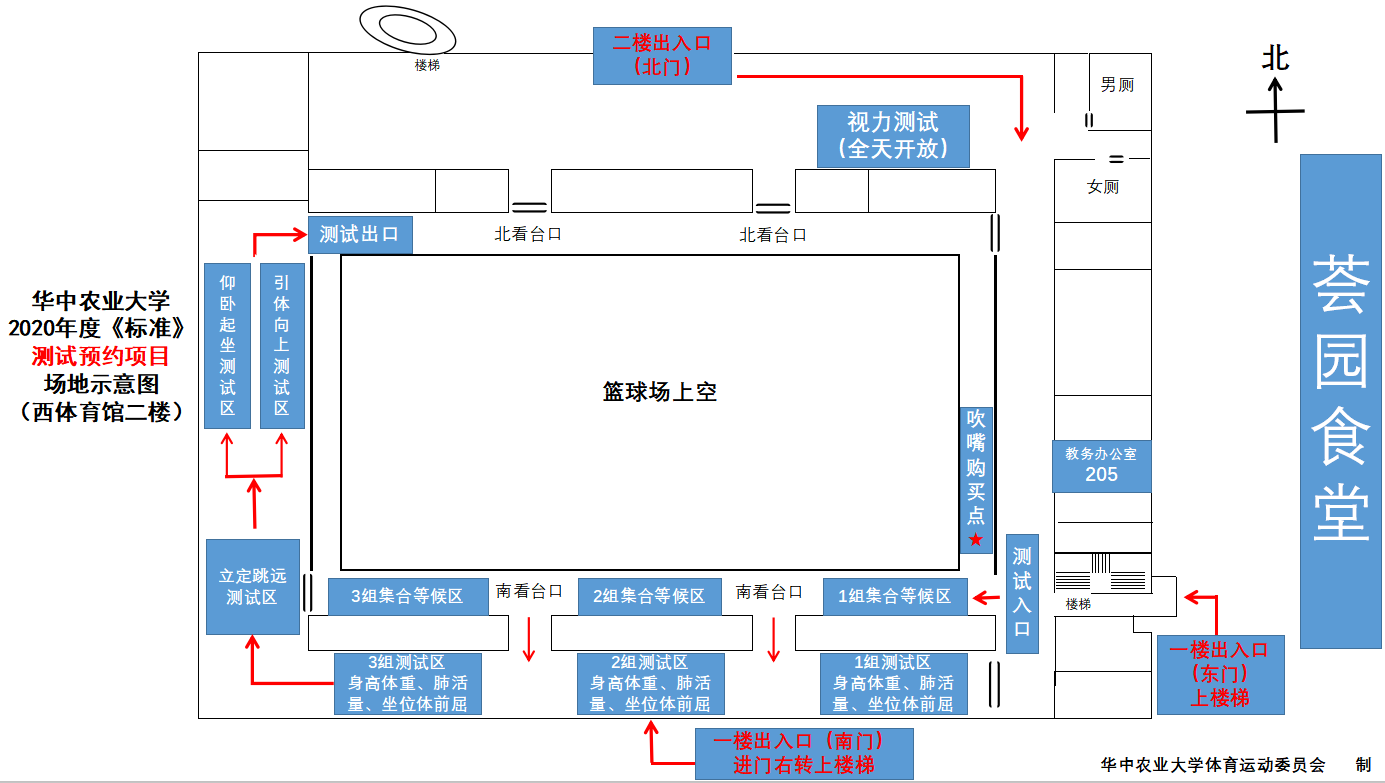 1.室内预约测试:西体育馆二楼南厅