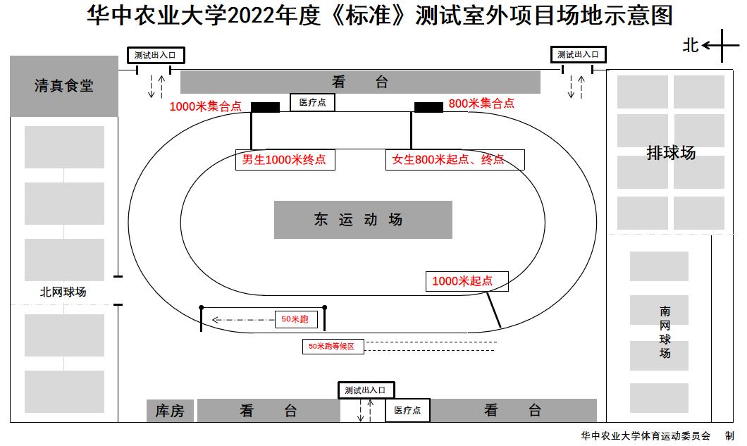 2.室外集中测试项目:50米、1000米跑(男),800米跑(女)