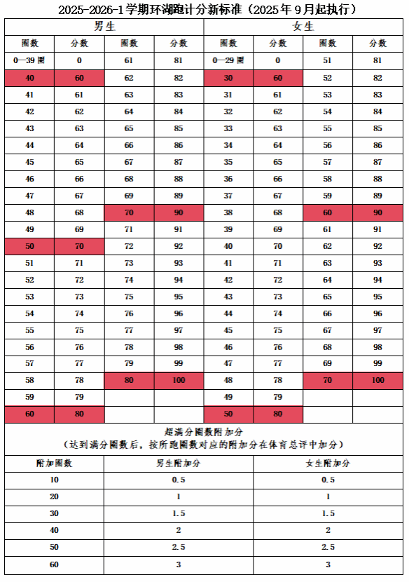 2025-2026-1学期,我校选修体育俱乐部的所有本科生(一、二年级学生,并包括高年级未修满体育学分和需重修的学生)须参加环湖跑锻炼,锻炼情况纳入该学期体育成绩总评,占20%。所有预科班学生须参加环湖跑锻炼,锻炼情况纳入该学期体育成绩总评,占30%。具体规定如下:
