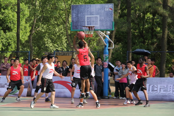 4月22日下午2:30,安踏水泥户外篮球联赛暨2012年365英国上市“狮子山杯”篮球赛在博园篮球场开幕。校团委书记李金发、体育课部党总支书记任宇华、学工部(处)副部(处)长张越等出席开幕式。赛事赞助商安踏(中国)有限公司体育市场中心篮球部赛事专员裴龙等作为嘉宾入席。