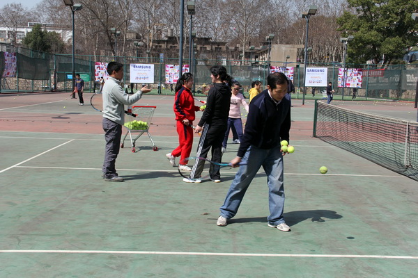 据体育课部副主任祝自新介绍,今年每个单位限报5人,报名参加人数已达81人,较第一期培训班人数有显著增加。在为期一月的初级培训班中,每周六、周日上午是两个半小时的集中培训,每周二、周四晚上进行自主学习,并安排专业教师辅导。之后还有中级提高班,参训学员最后都可在教职工网球大赛上一展身手。