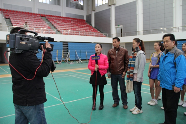 昨日上午,湖北电视台一行前来我校体育课部采访网球操运动。12名身着蓝色T恤的“网球宝贝”面带微笑,和着动感十足的音乐,手持网球拍尽情挥舞,在镜头前留下了靓颖。她们正在为第二届“健康武汉·快乐健身”网球操决赛做最后的冲刺训练。
